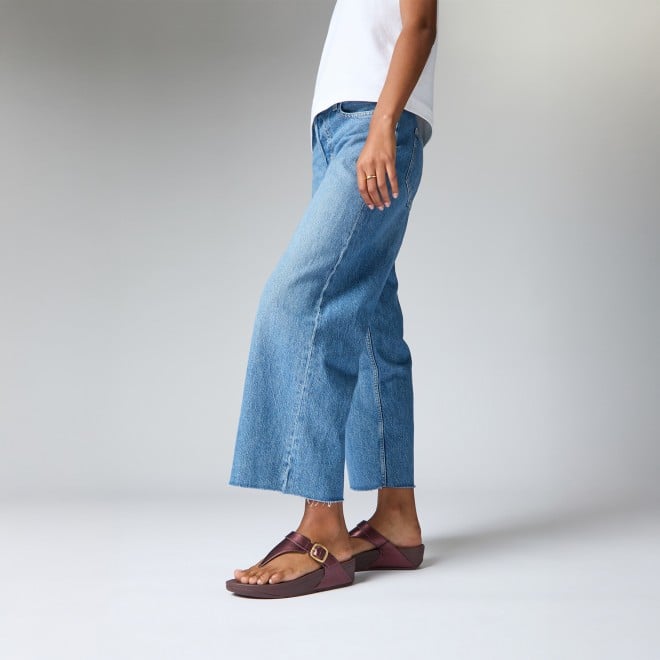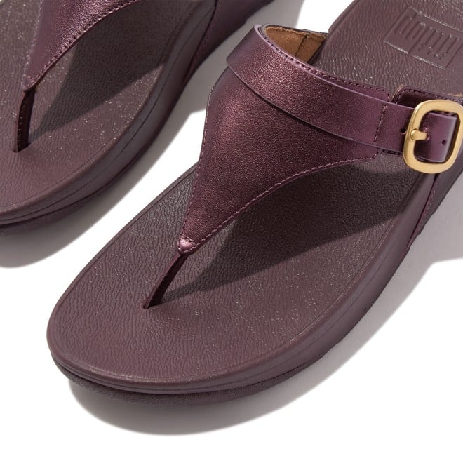 Women Metallic Mauve Wine Adjustable Metallic-Leather Toe-Post Sandals