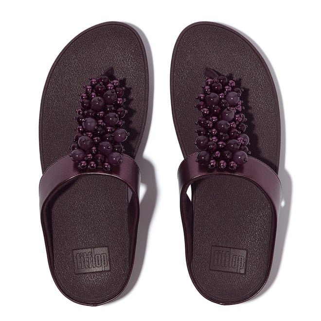 Women Metallic Plumberry Bauble-Bead Toe-Post Sandals