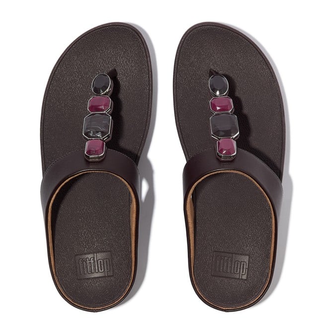 Women Plumberry Multi-Stone Leather Toe-Post Sandals