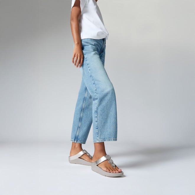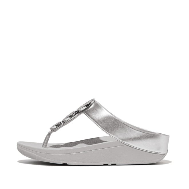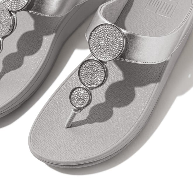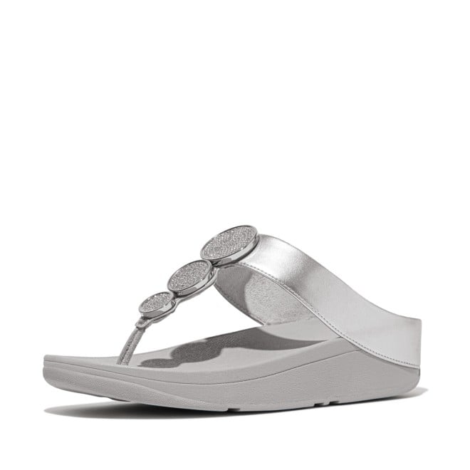 Women Silver Bead-Circle Metallic Toe-Post Sandals