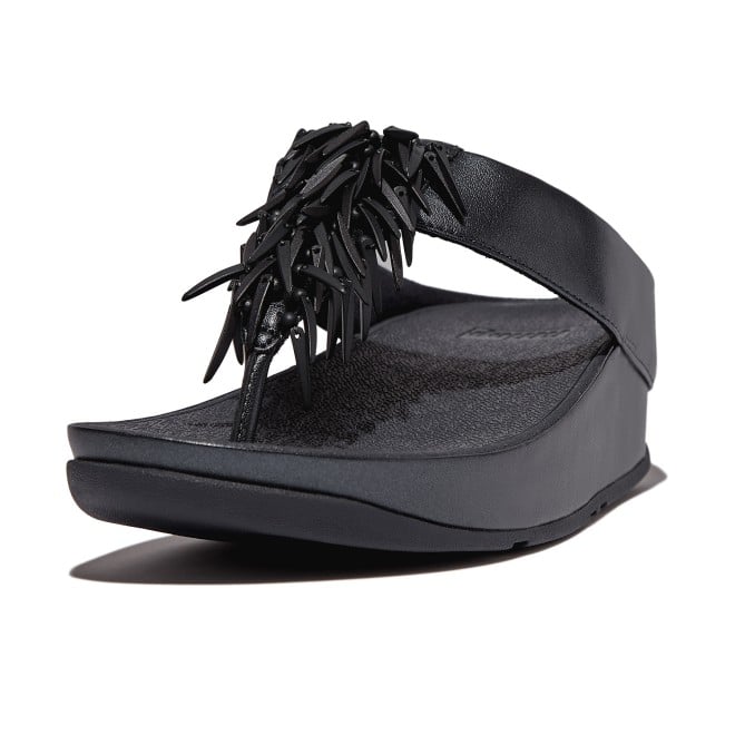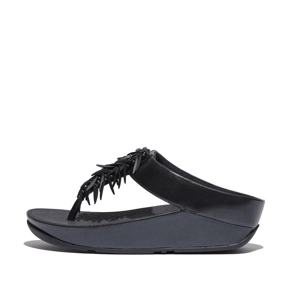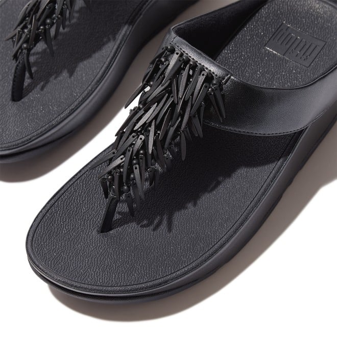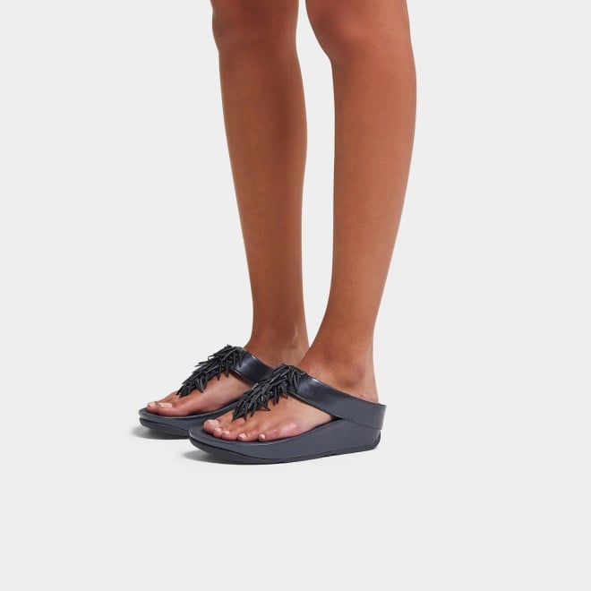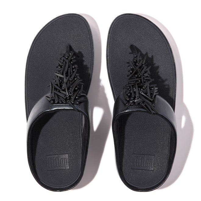 Do the Rumba with these glittering, graceful toe-post sandals. Featuring slim uppers strewn with a shiny, swishy fringe formed of multi-tonal 'crystal' beads (clear, opaque and metallic). On FitFlop's legendary triple-density Microwobbleboard midsoles for unbeatable all-day comfort and cushioning. Slip them on and find a party! This version with uppers and midsole wrap in soft metallic pearlised faux-leather to maximise shimmer.