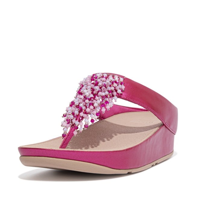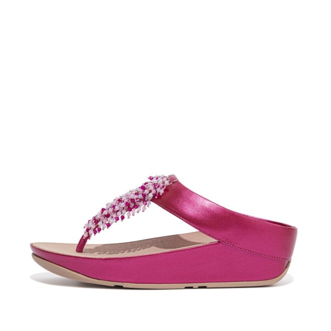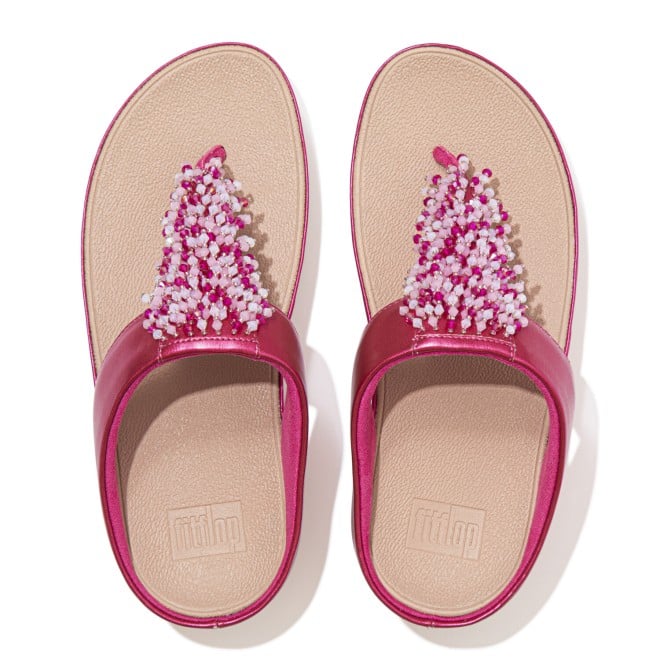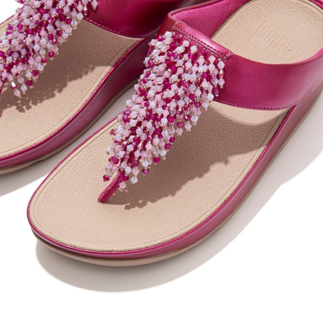 Women Fuchsia Rose Rumba Beaded Toe-Post Sandals