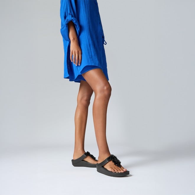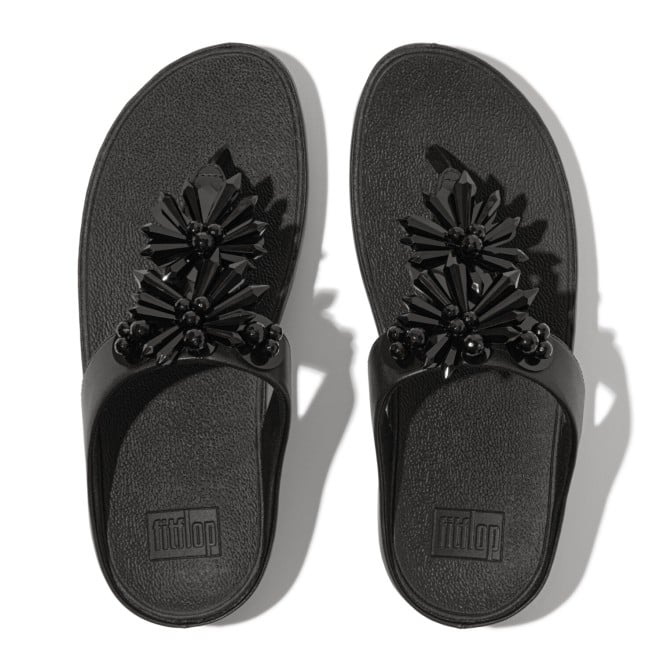 Women Black Rumba Starburst-Bead Toe-Post Sandals