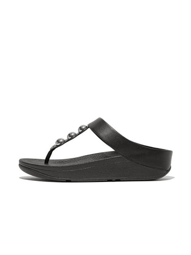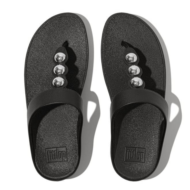 Women Black Mirror-Dome Leather Toe-Post Sandals