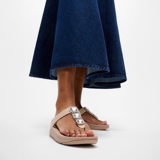 Women Classic Beige Crystal-Jewel Toe-Post Sandals