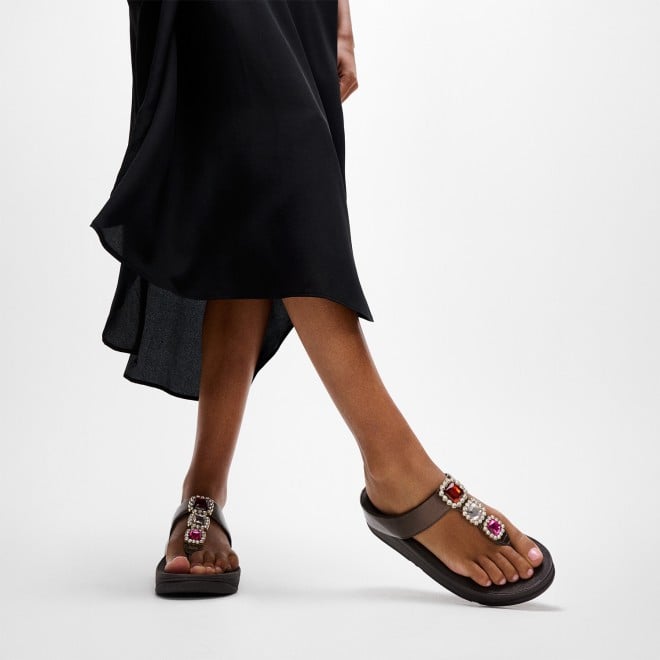 Women Metallic Chocolate Brown Crystal-Jewel Toe-Post Sandals