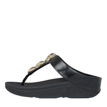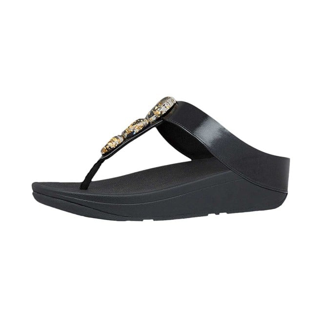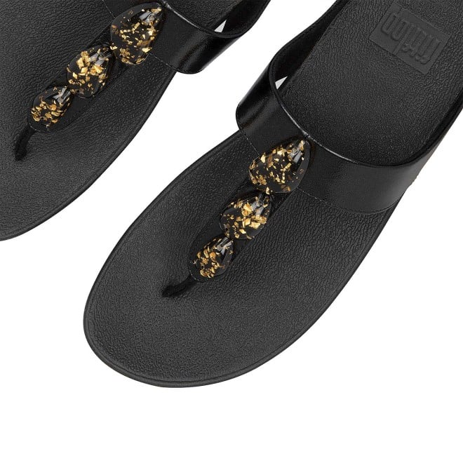 Women All Black Metallic Fleck Stone Toe-Thongs
