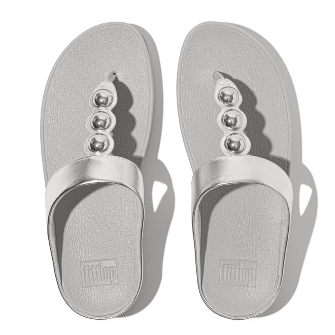 Women Silver Mirror-Dome Metallic-Leather Toe-Post Sandals