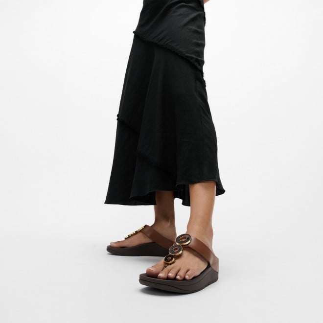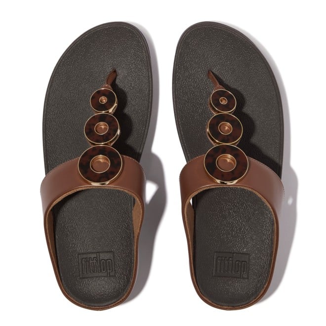 Women Rich Brown Resin-Hoop Leather Toe-Post Sandals