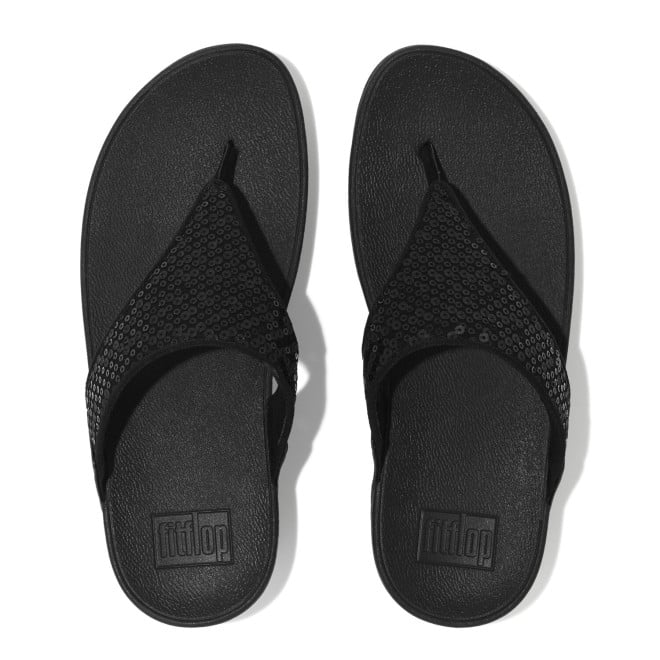Women All Black Sequined Toe-Post Sandals