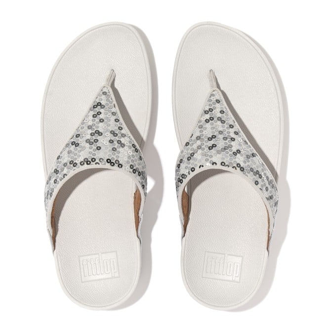 Women Silver Sequined Toe-Post Sandals