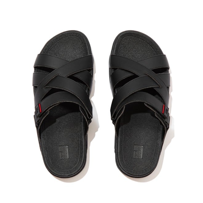This Adonis boasts handsome good looks (of course). This season, the multi-strap interlaced design is crafted in smooth faux-leather, with subtle detailing including a FitFlop-red webbing tab and logo'd rubber strap ends. But these slides are functional too. An adjustable hook-and-loop fastening ensures a great fit. And they feature the sporty-look version of our Microwobbleboard midsoles, in a fresh design, but keeping the same non-stop cushioning, pressure-diffusing, impact-reducing tech a game changer if you walk a lot. Aesthetics combined with awesome comfort.