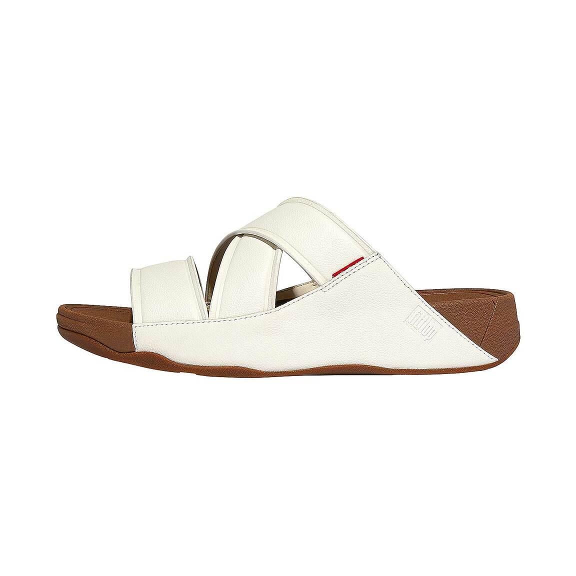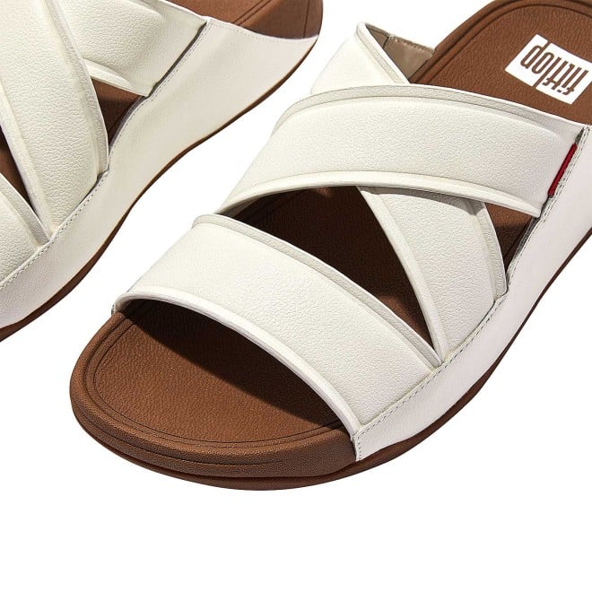 Stylish beach buddies, rugged strollers and smart enough to impress your boss on dress-down friday. Engineered with our biomechanist-developed, supercushioned microwobbleboard midsoles, these handsome chi slides are prepared for whatever you chuck at them like a swiss army knife for your feet. Detailing includes an embossed logo and a fitflop-red webbing tab. This version crafted in a luxe embossed leather for subtle texture.
