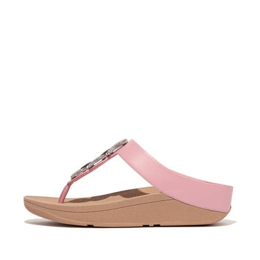 Women Soft Blush Crystal-Chain Leather Toe-Post Sandals