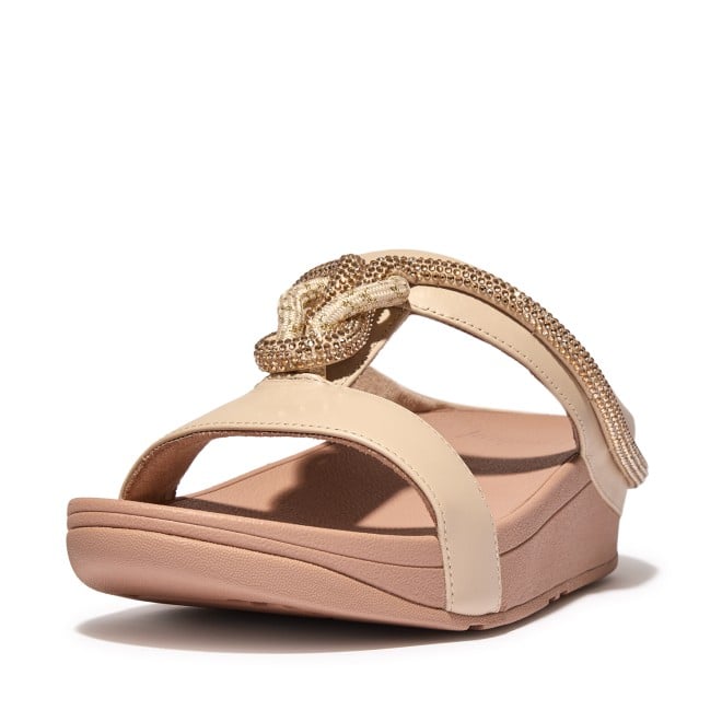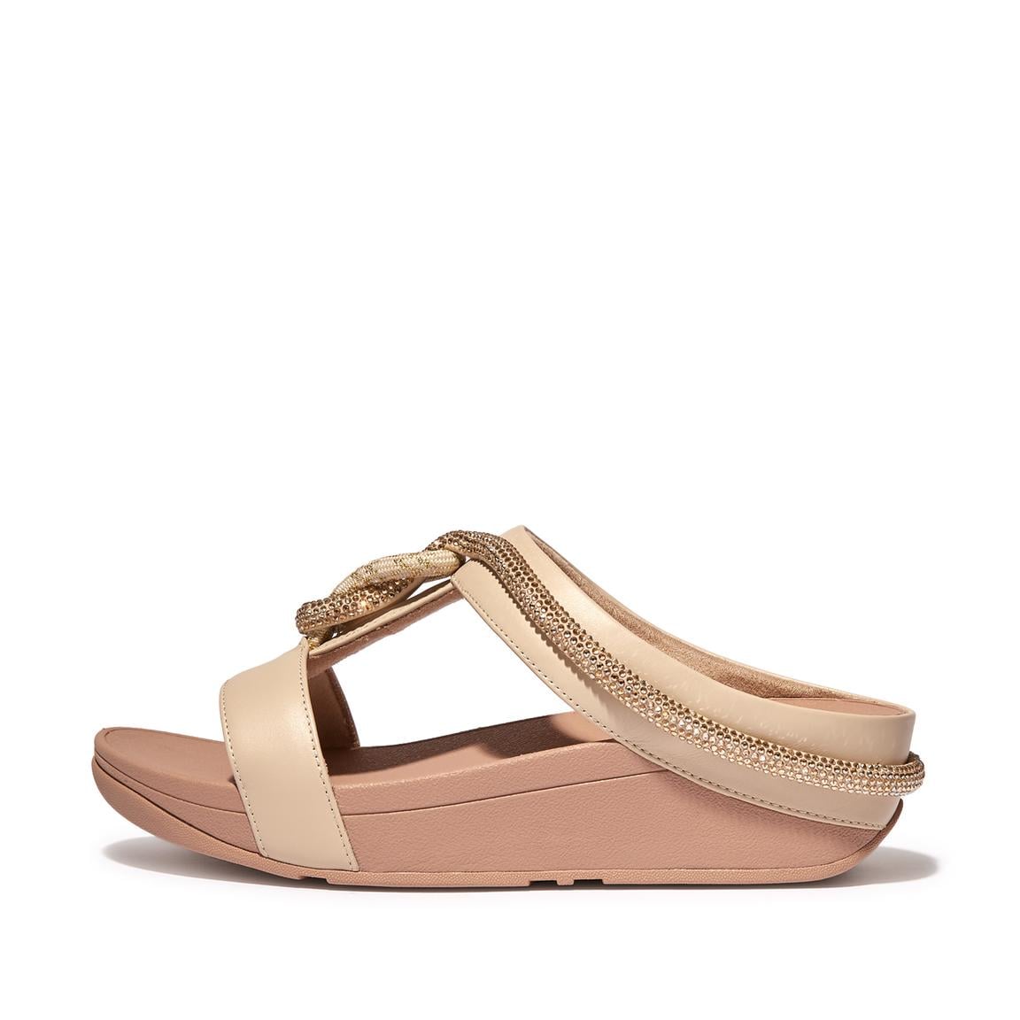 Women Stone Beige Crystal-Cord Leather Slides