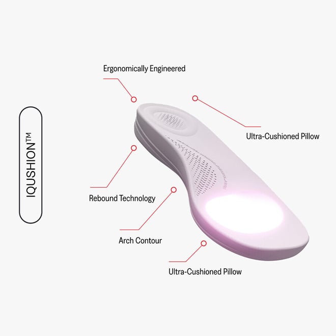 From the top, they look like your typical surfer-girl flip-flops. Underneath, They are engineered with our iQushion midsole tech. Made of high-rebound air-foam for non-stop cushioning, with heel and ball-of-foot impact pillows, and a contoured arch-curve for natural support when you walk. This version adorned with sparkling micro-'crystals', throw a pair in your suitcase and you will find yourself wearing them to beach, bar and beyond. Waterproof and slip-resistant.