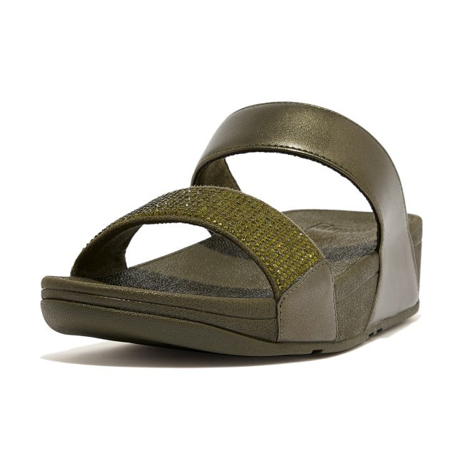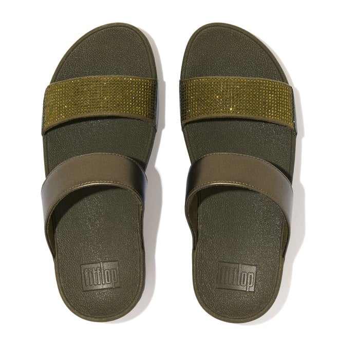 Women Mossy Crystal Embellished Slides