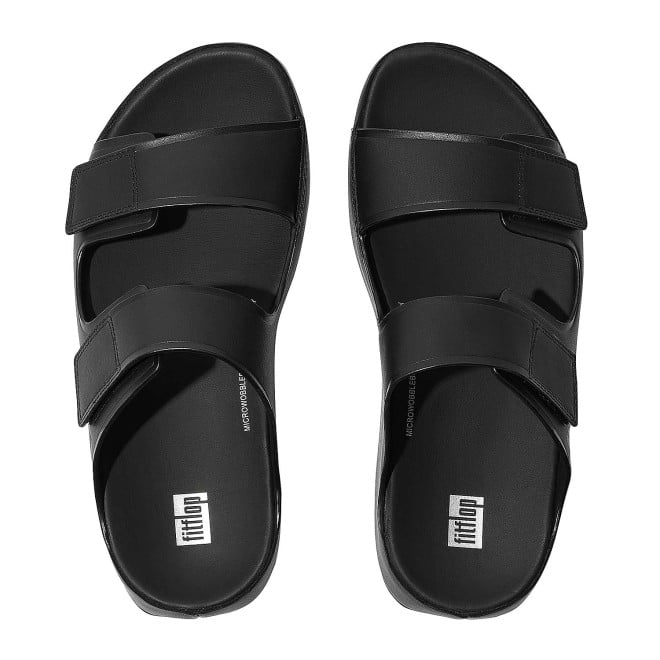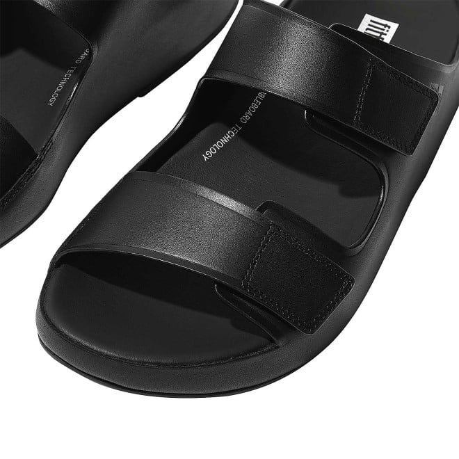 Raise your sandal game with these refined slides. Sleek. Understated. This two-bar version boasting touch straps for adjustability, ease, and a clean finish. Crafted in smooth high-quality leather, with double-row stitching and debossed edges and logos for subtle detail. Soft all-leather linings and leather-wrapped soles enhance the luxe feel. The comfort's on another level too thanks to our triple-density Microwobbleboard midsoles delivering pressure diffusion, impact reduction and non-stop cushioning. Slide on to elevate almost any warm-weather outfit: in the city, weekend jaunts, on holiday...